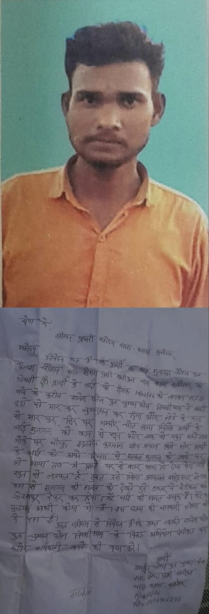 मृतक के भाई अर्जुन चौहान द्वारा दी गई लिखित तहरीर में आरोपी के खिलाफ सख्त कार्रवाई की मांग की गई है।