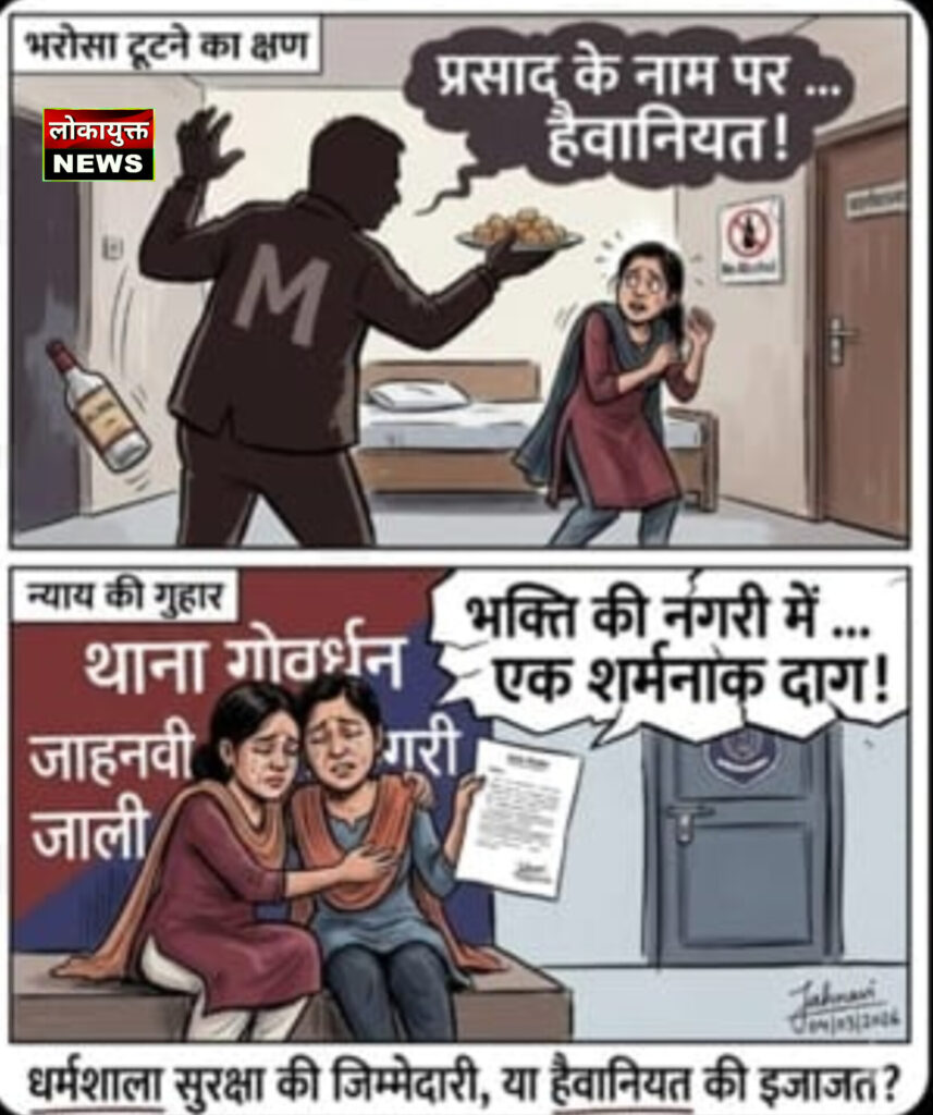 मथुरा। मथुरा की तीर्थ नगरी गोवर्धन में एक धर्मशाला के मैनेजर पर श्रद्धालु युवती से छेड़खानी का गंभीर आरोप लगने से इलाके में सनसनी फैल गई। गुजरात से दर्शन करने आई दो युवतियों ने धर्मशाला के मैनेजर पर अभद्रता और जबरन कमरे में घुसकर छेड़खानी करने का आरोप लगाया है। घटना के बाद पुलिस ने शिकायत के आधार पर मामले की जांच शुरू कर दी है।