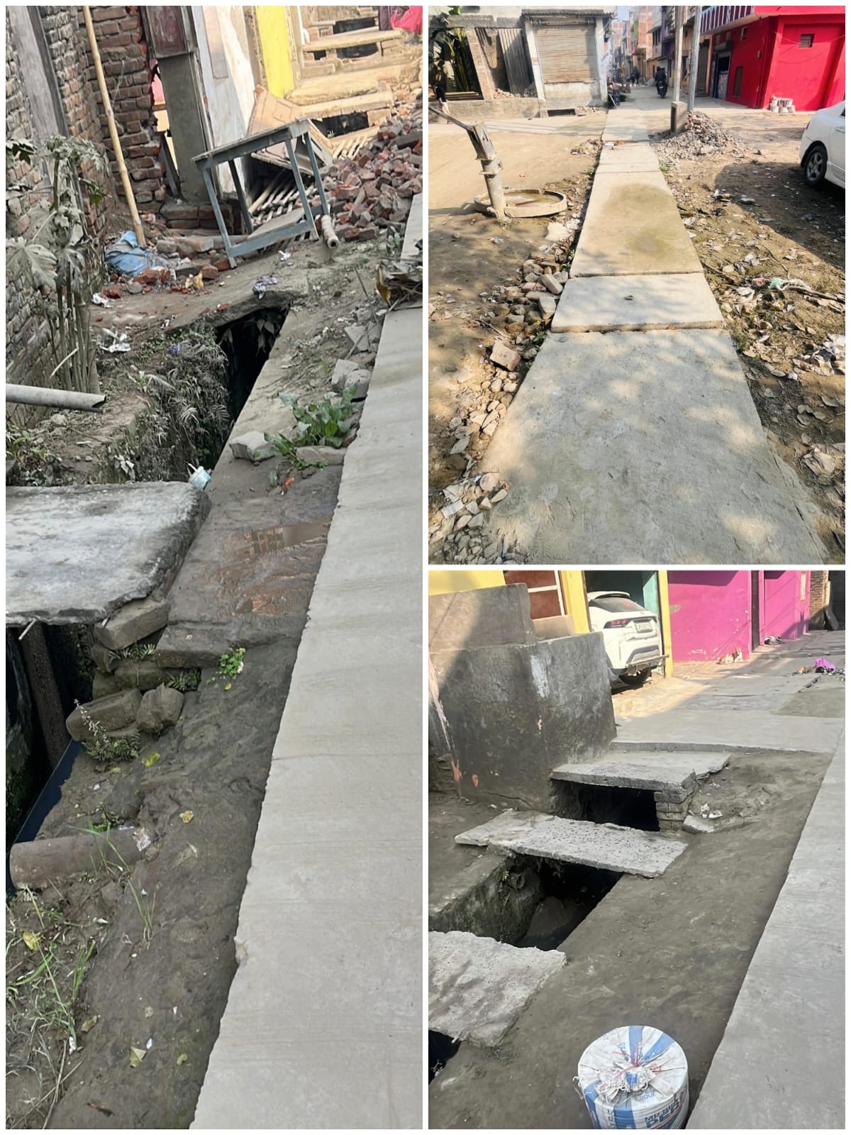 स्थानीय लोगों का आरोप है कि टेंडर में दर्शाए गए स्थान पर कार्य न कराकर दूसरी जगह अधूरा निर्माण कराया जा रहा है। समाजसेवी मनोज कुंदन द्वारा मुख्यमंत्री पोर्टल (IGRS) पर की गई शिकायत के निस्तारण में अधिशासी अधिकारी ने दावा किया कि नाली मानक के अनुसार बना दी गई है, जबकि मौके पर ऐसा नहीं है। आरोप है कि बिना टेंडर के अन्य स्थान पर निर्माण कराया जा रहा है।