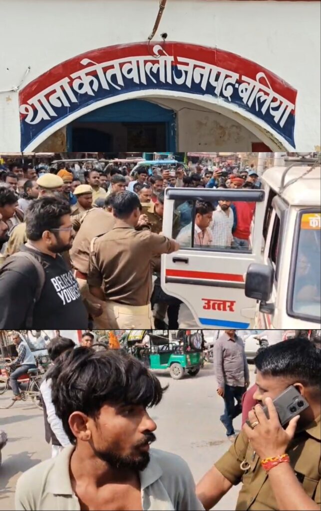 उत्तर प्रदेश के बलिया शहर में कानून व्यवस्था पर सवाल खड़े करने वाली घटना सामने आई है। कोतवाली क्षेत्र स्थित कुँवर सिंह चौराहा के पास दिनदहाड़े दो गुटों के बीच जमकर मारपीट हो गई। हैरानी की बात यह रही कि घटना के दौरान पुलिस मौके पर मौजूद थी, लेकिन काफी देर तक दोनों पक्षों के बीच हाथापाई चलती रही।
