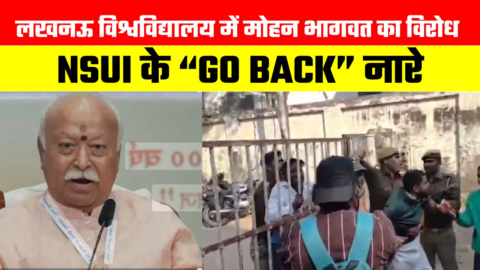 कार्यक्रम स्थल पर पहुंचते ही छात्र संगठन NSUI से जुड़े कुछ छात्रों ने विरोध प्रदर्शन शुरू कर दिया। प्रदर्शनकारियों ने “GO BACK” के नारे लगाए और मुख्य गेट के बाहर जमकर नारेबाजी की। मौके पर तैनात पुलिस बल ने स्थिति को नियंत्रित किया और विरोध कर रहे छात्रों को हिरासत में लेकर परिसर से बाहर कर दिया।