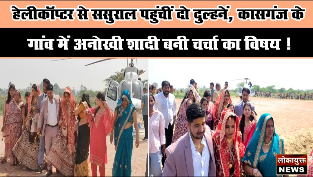 हेलीकॉप्टर से ससुराल पहुंचीं दो दुल्हनें, कासगंज के गांव में अनोखी शादी बनी चर्चा का विषय !